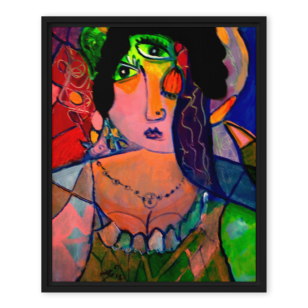 – The framed canvases with brown and black frames have a black inside around the canvas, and the canvases with white frames have a white inside around the canvas.