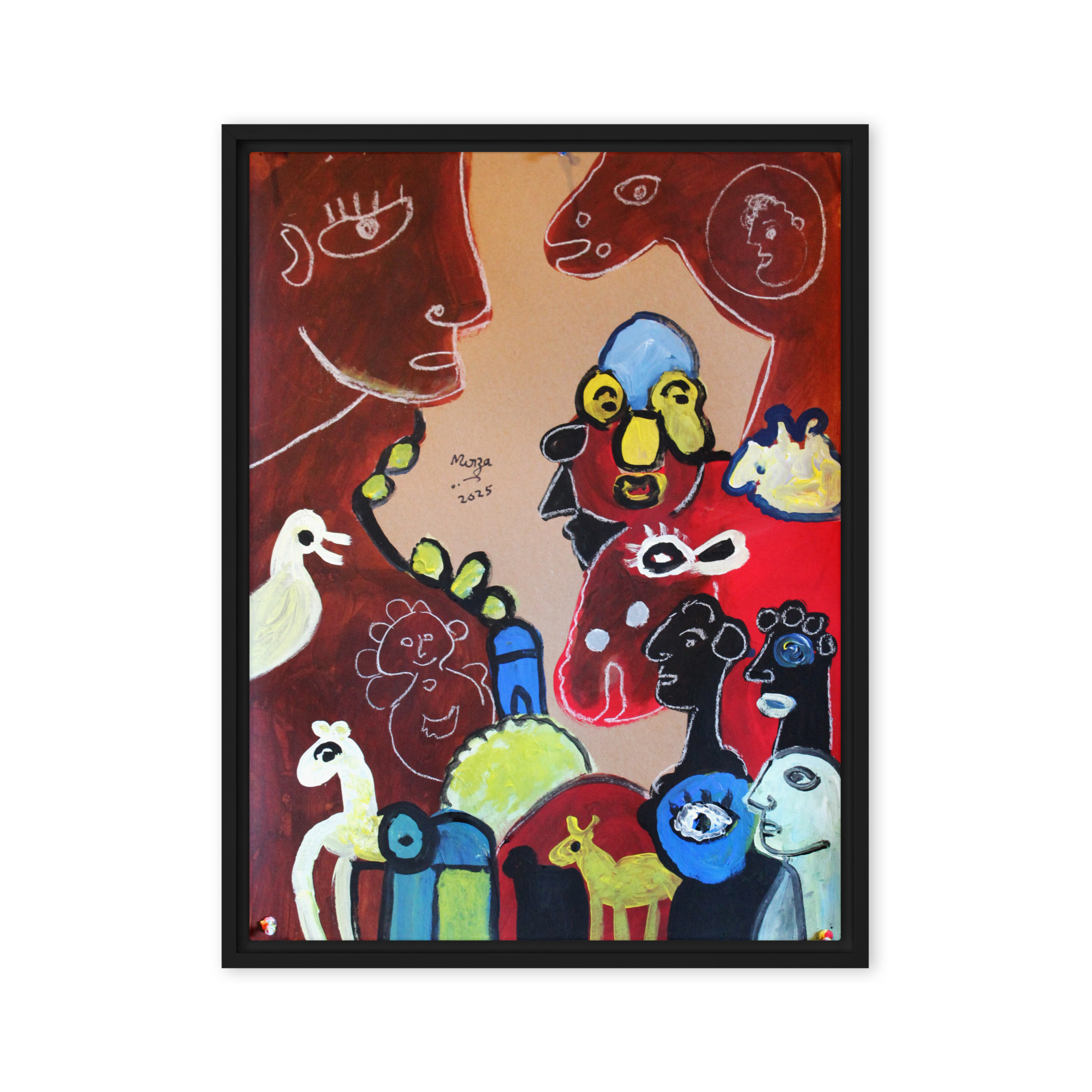 – The framed canvases with brown and black frames have a black inside around the canvas, and the canvases with white frames have a white inside around the canvas.