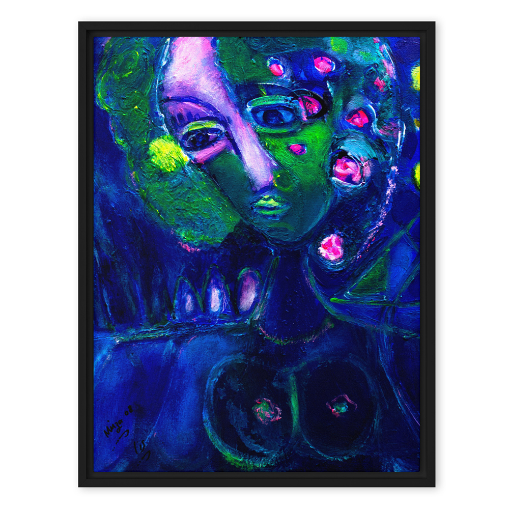 – The framed canvases with brown and black frames have a black inside around the canvas, and the canvases with white frames have a white inside around the canvas.