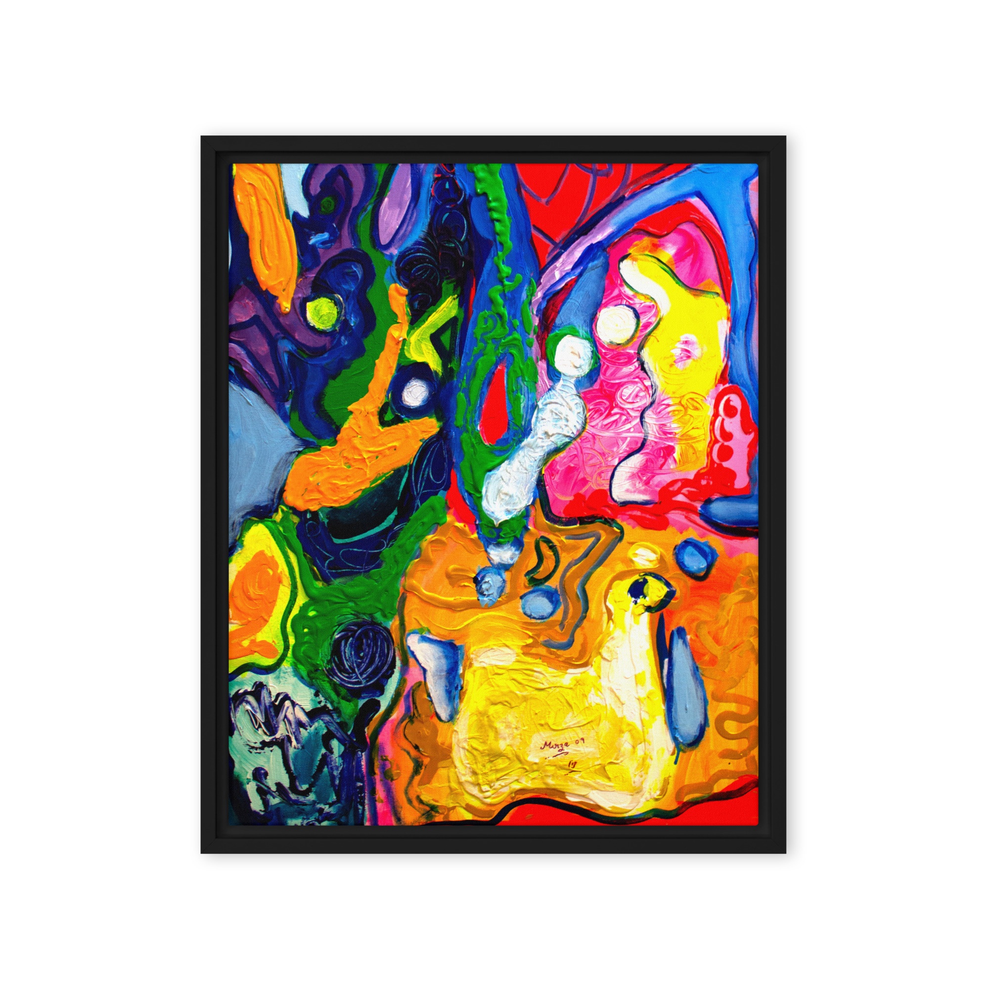 – The framed canvases with brown and black frames have a black inside around the canvas, and the canvases with white frames have a white inside around the canvas.